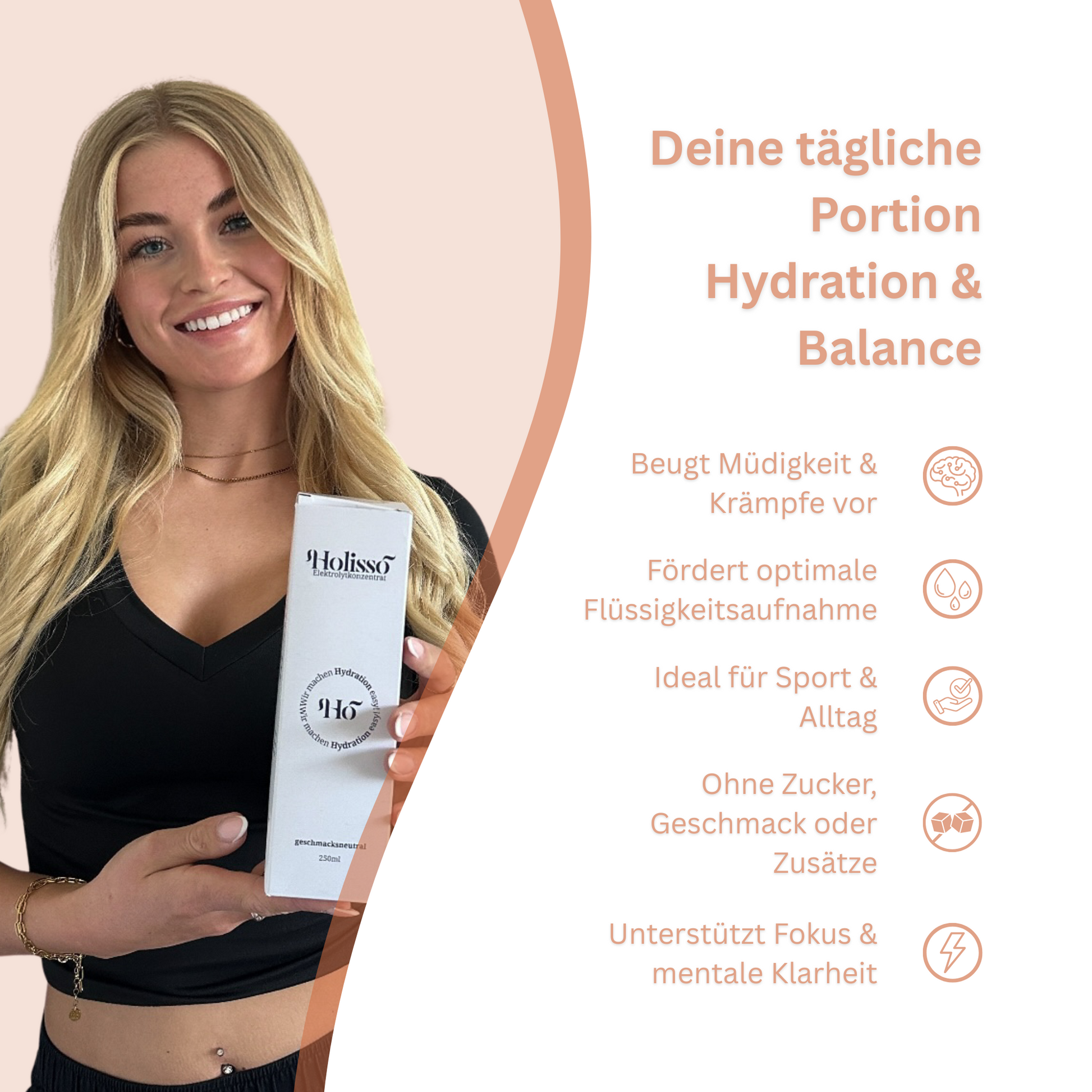 Dann könnte es sein, dass deinem Körper wichtige Elektrolyte fehlen. Mit Holisso bringst du Power und Balance zurück in deinen Alltag!